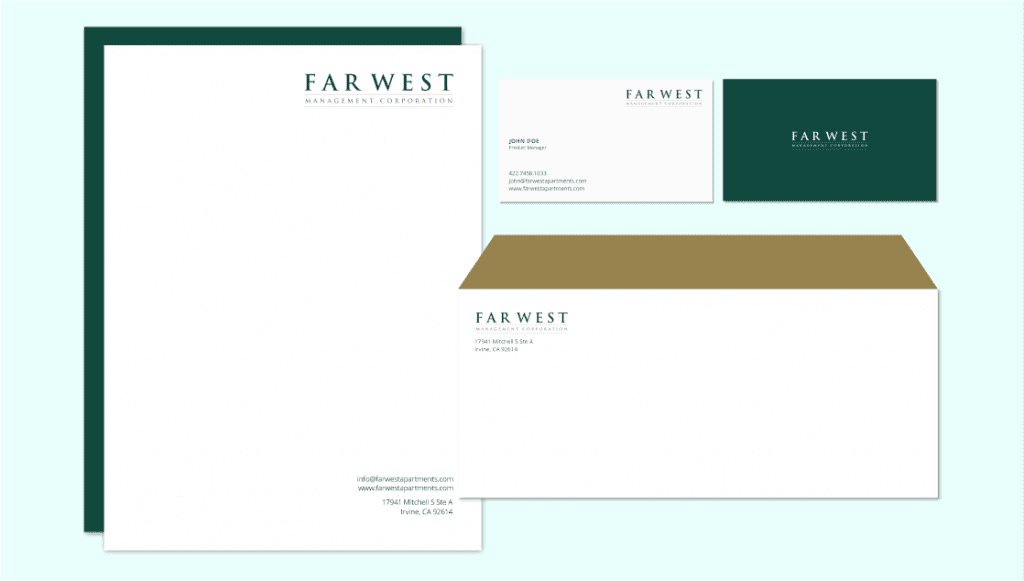 FarWest Management Corporation is a long-established property management company in the United States, overseeing high-quality apartment communities with a commitment to comfort, stability, and long-term resident satisfaction. Their identity—rooted in classic typography and Western-inspired color tones—reflects a company with decades of trust behind it. FarWest needed a cohesive identity that matched the quality of its communities and modern expectations of renters and investors.